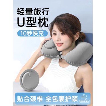 長途旅行按壓式充氣U型枕便攜吹氣靠枕頸椎護頸枕夏季清涼枕頭