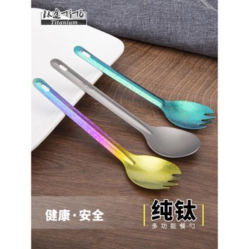鈦途TiTo純鈦叉勺一體家用戶外鈦合金勺子露營野餐餐具便攜鈦叉子