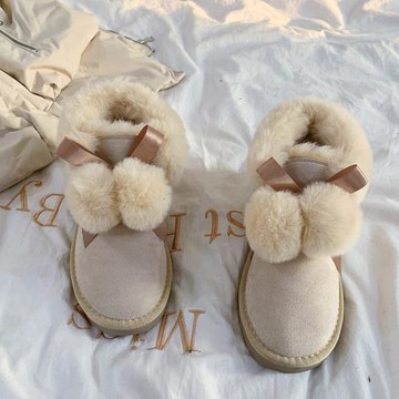 皮毛一體豆豆鞋女冬加絨2025年新款毛毛蝴蝶結棉鞋外穿羊毛雪地靴