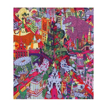 奇幻の城~幻想中斑斕多彩的絲巾~90cm手工邊圍巾防曬頭巾空調披肩