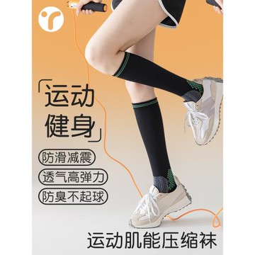 壓力襪跳繩跑步專用壓縮襪女健身瑜伽瘦腿小腿襪肌能運動中筒襪子