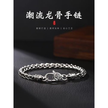 羅泰老銀匠925銀龍骨手鏈男士潮款復古泰銀小眾痞帥高級感手飾品