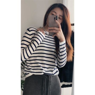韓版早秋慵懶風條紋寬鬆百搭長袖T恤【W85】