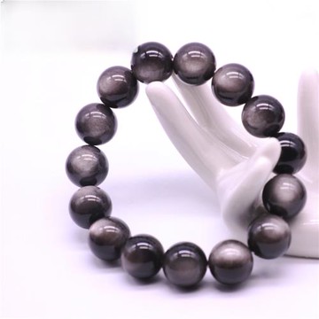 天然銀曜石手鏈單圈男女款金銀曜石手串時尚水晶飾品禮物黑曜圓珠