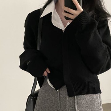 點我下載韓國chic秋冬新款氣質百搭毛衣開衫女v領暗扣簡約針織外套