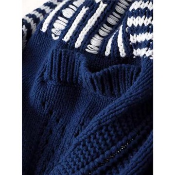歐洲站白鹿楊冪冪同款撞色提花藏青拉鏈連帽開衫羊毛針織毛衣外套