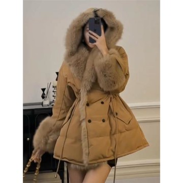 N1N1YES毛毛加厚長款羽絨棉服女冬季2025新款保暖外套羽絨