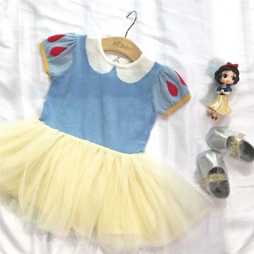 18春夏新款女童白雪公主連衣裙1-3-5歲女寶網紗蓬蓬裙針織連衣裙