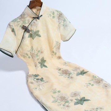 旗袍2025年新款女夏季素雅復古中國風花朵中長款年輕款改良連衣裙