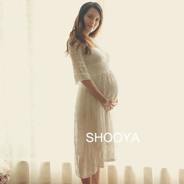 歐美女裝蕾絲孕婦拖尾短袖連衣長裙攝影飛飛袖連衣裙8919(特價品