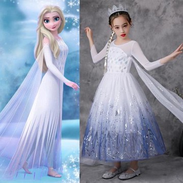 2021萬圣節新款愛莎公主裙女童冰雪奇緣艾莎2披風亮片白色連衣裙