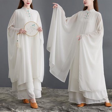 WYZ蓋蓋同款中式盤扣紗衣寬袖古風長衫飄逸古典新國風爵士舞蹈