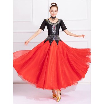 新品鑲鉆摩登舞演出服修身國標舞大擺連衣裙華爾茲交誼舞廣場舞裙