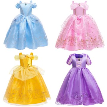 跨境外貿灰姑娘仙蒂公主裙 女童亮片拼接網紗蓬蓬長發禮服裙貝爾