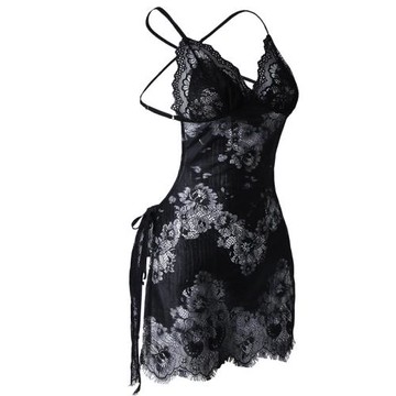 200斤性感睡衣側系帶開叉蕾絲吊帶睡衣裙外貿特大碼女裝速賣通潮