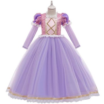 外貿新款童裝蘇菲亞長發公主裙禮服演出服連衣裙網紗拼接蓬蓬長裙