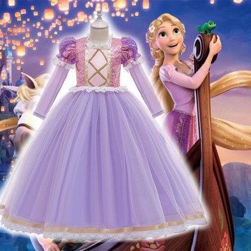 兒童長發公主裙寶寶樂佩裙子女童蘇菲亞連衣裙紫色紗裙生日禮服