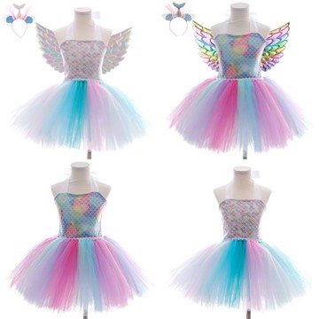 女童獨角獸蓬蓬裙Rainbow彩虹仙女公主裙子小清新翅膀天使半身裙
