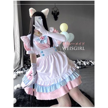 COS可愛粉嫩女仆套裝大碼情調睡衣洛麗塔性感制服ins衣服貓咪套裝
