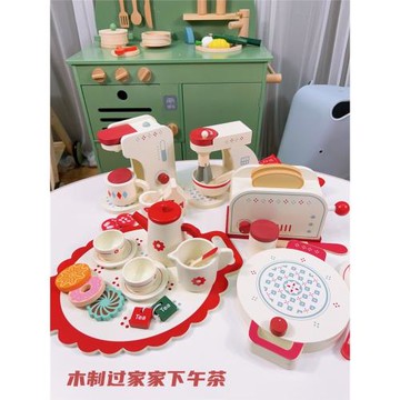 北歐風木制仿真茶壺茶具下午茶盤面包機咖啡機廚房過家家女孩玩具