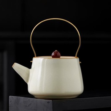 米黃汝窯提梁壺功夫茶具單壺小容量家用陶瓷茶水壺輕奢高檔泡茶壺