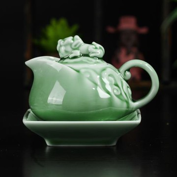 龍泉青瓷茶壺家用功夫茶具招財貔貅茶壺單壺陶瓷泡茶花茶壺沖茶器