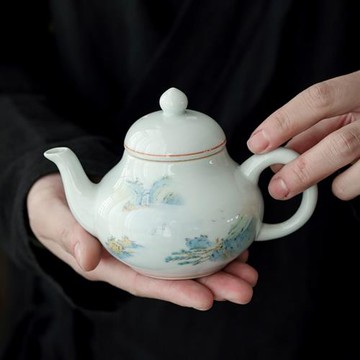 拓土仿古描金純手繪碧水青山供春壺陶瓷茶壺單壺家用帶過濾泡茶壺