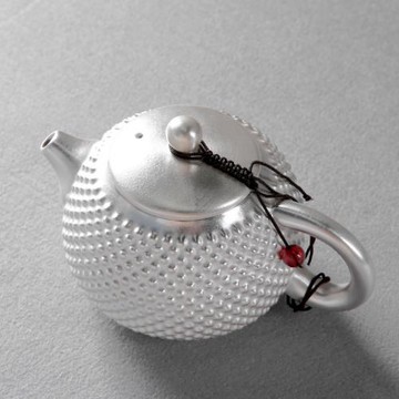 手工純銀雙耳錘目壺 一張口打出