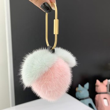 【水蜜桃】ins少女心水貂毛小桃子皮草掛件 包包掛飾愛心車鑰匙扣