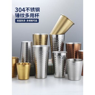 304不銹鋼錘紋果汁杯啤酒杯金色鉆石水杯防燙食品級時尚餐廳茶杯