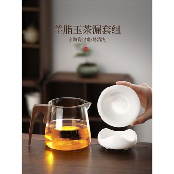璞器白瓷茶漏茶濾隔茶葉過濾網泡茶陶瓷公道杯一體濾茶器茶具配件
