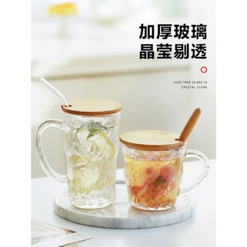 冰川紋玻璃杯帶蓋勺把手高顏值咖啡杯喝水杯子女生家用茶杯牛奶杯