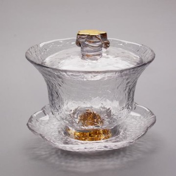 水晶金箔蓋碗耐熱玻璃描金茶具藏金杯三才杯主人茶杯功夫公道杯子