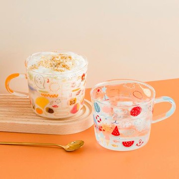cybil卡通帶刻度玻璃杯子高硼硅大容量家用早餐杯燕麥杯奶茶杯ins