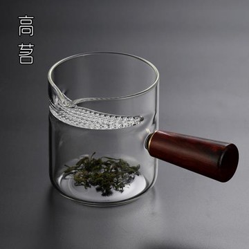 木柄玻璃公道杯茶漏一體分茶器帶過濾茶杯套裝茶濾側把公杯月牙杯