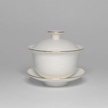 功夫茶具手繪線條青瓷蓋碗陶瓷脂白大號茶碗三才碗三才杯泡茶碗
