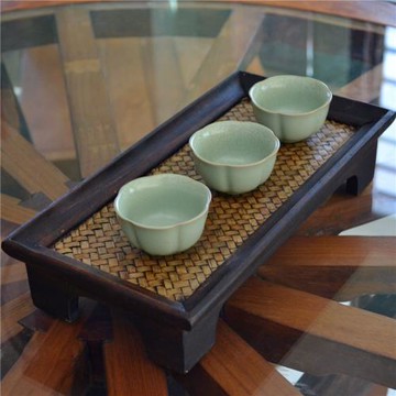 泰國木質編織托盤泰式水杯茶杯托盤茶盤酒店長方形托盤藤東南亞風