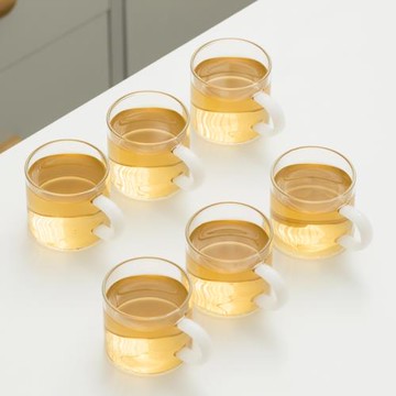 玻璃小茶杯透明品茗杯帶把喝水杯家用簡約耐高溫主人單杯功夫茶具