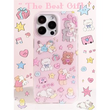 momolling丨原創韓系小眾新款可愛涂鴉戴帽小狗透明磨砂雙層imd硅膠適用蘋果16promax/15手機殼iPhone14pro