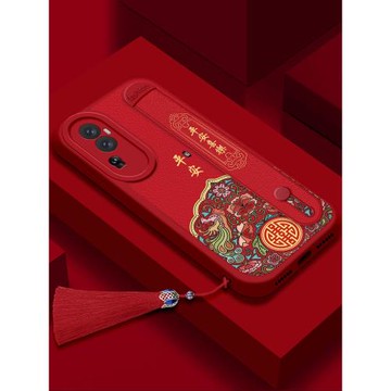 良叁邑適用oppo手機殼reno5小羊皮reno4pro硅膠軟reno3新款reno4se腕帶pro支架全包國潮網紅款時尚防摔保護套