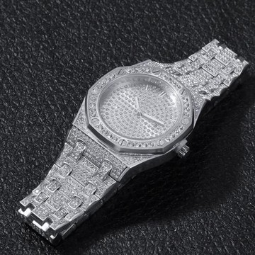 2025年新款滿鉆手表男士嘻哈滿天星奢華大表盤石英表時尚潮流腕表