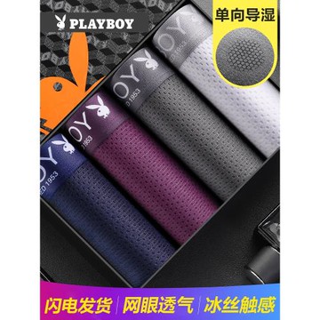 花花公子男士內褲男平角褲衩冰絲透氣網眼大碼四角褲頭青年潮夏季