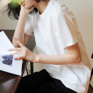 出品寬松自然邊圓領基礎短袖文藝