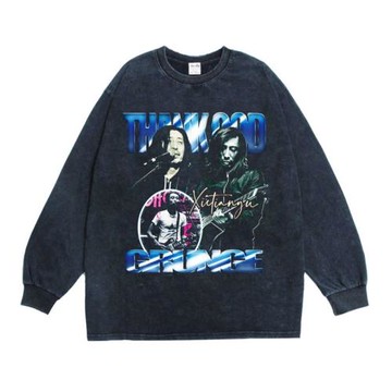 數碼直噴中國雷鬼謝天笑幻覺搖滾專輯印花寬松長袖印花T恤男女