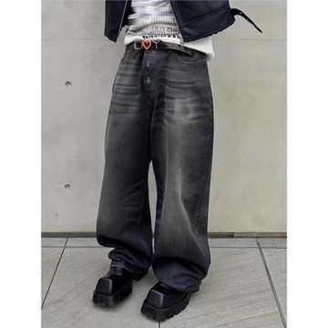 B家LargeBaggy洗水灰闊腿牛仔褲yanggeng88同款巴黎風格潮男長褲