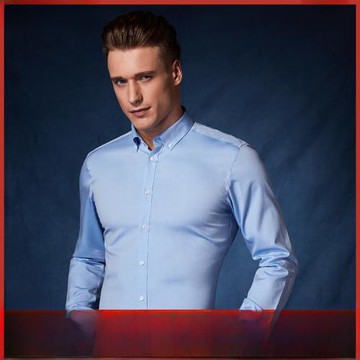 工作長袖襯衫男青年商務職業工裝淺藍色斜紋襯衣男西裝寸衫工作服