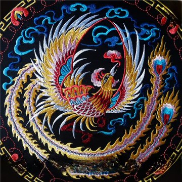 山海經刺繡鳳凰原創龍袍朱雀中國風民族風補子男女短袖T恤衣服裝