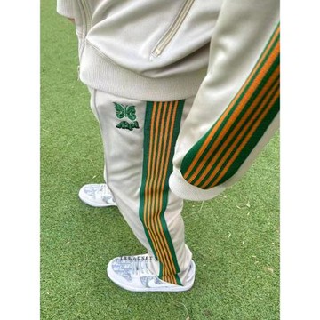 Needles Aipl聯名限定刺繡蝴蝶復古絲絨織帶條紋休閑運動長褲男女