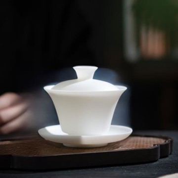 羊脂白玉蓋碗茶杯陶瓷家用茶壺泡茶碗杯德化白瓷敬茶杯三才 蓋碗
