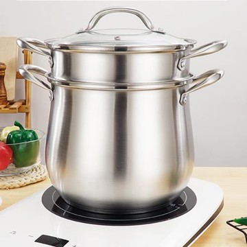 SUS304不銹鋼湯鍋復底加厚燃氣燉湯鼓型特高鍋帶蒸籠通用汽鍋底鍋